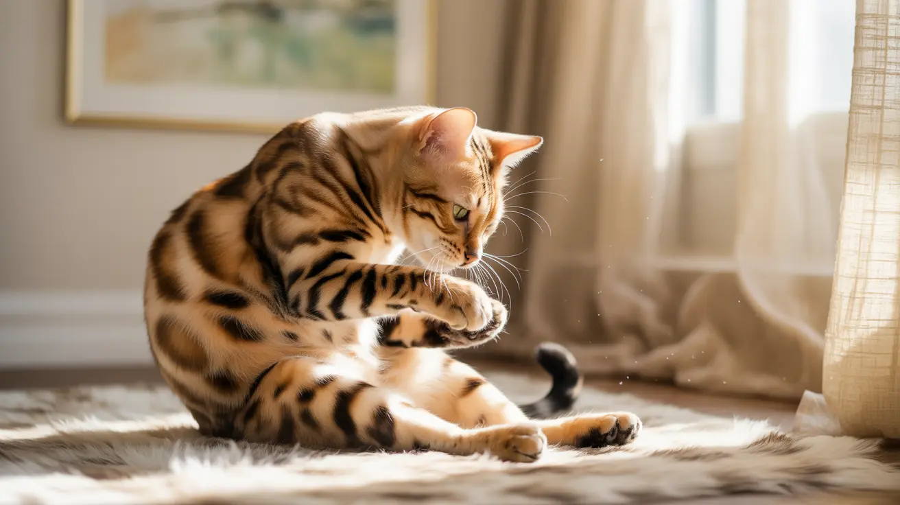 Flea infestations and allergic reactions to flea saliva are leading causes of overgrooming. Even a single flea bite can trigger intense irritation in sensitive cats.