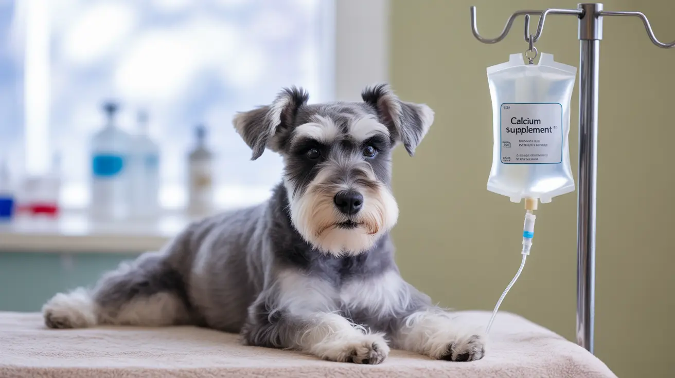 Dogs experiencing severe hypocalcemia require immediate hospitalization and treatment with intravenous calcium supplements. This emergency intervention is crucial to stabilize the patient and prevent life-threatening complications.